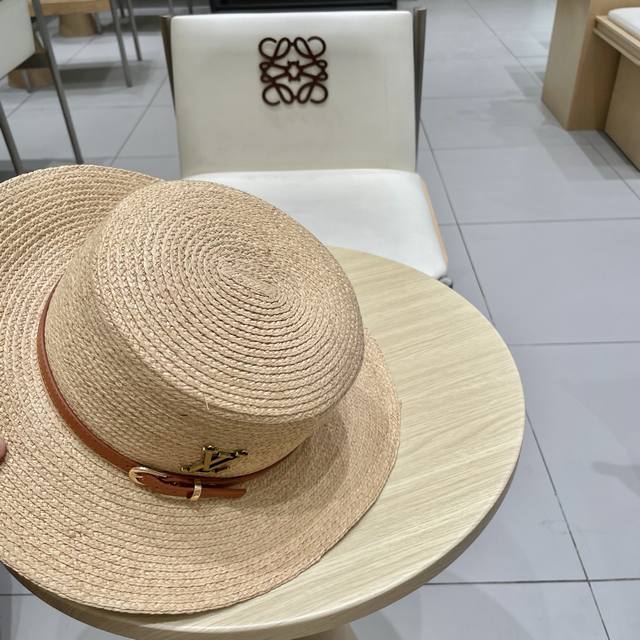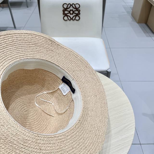 / Lv Louis Vuitton new flat-top raffia straw hat, head circumference 57cm