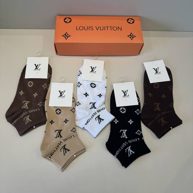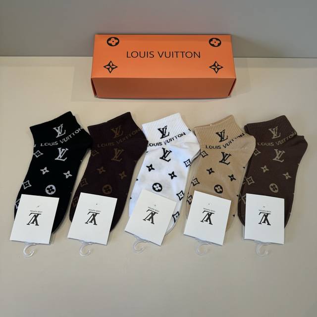 Lv New early autumn mid-length socks, classic style, fashionable and advanced! Big brand out, trendy must-have, versatile colors. 5 pairs per box