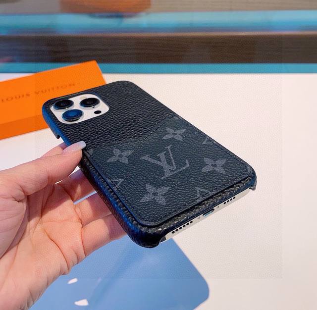 Lv official website same style lychee pattern classic old flower card slot mobile phone case old flower splicing card slot mobile phone case