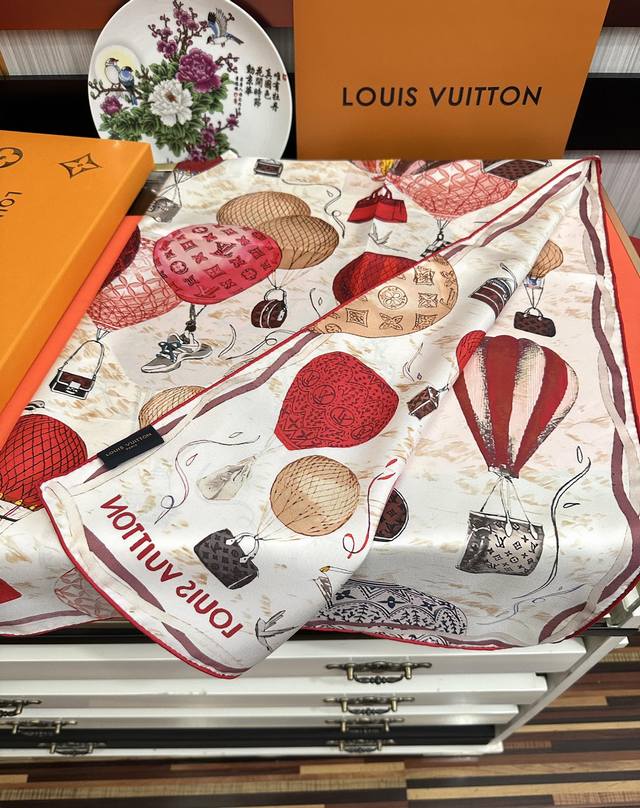 Lv official website synchronized double-sided same color hot air balloon, exquisite rolled edge, so beautiful, forever so classic. "Paying tribute to the original design through chic classic colors, the work is not reinterpreted or redesigned [lips], presenting the artist's original design in a simple and faithful way. This can be worn in many ways and goes well with any outfit. Whether worn around the neck, as a belt or headscarf, it is pleasing to the eye. It's simply too beautiful. Size: 90X90, Material: 100% top-grade silk,