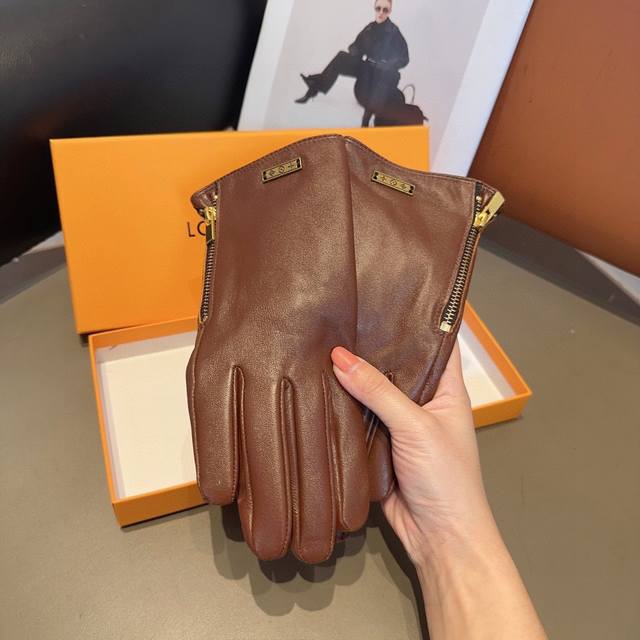 Lv women's sheepskin gloves, fashionable gloves, warm in autumn and winter with