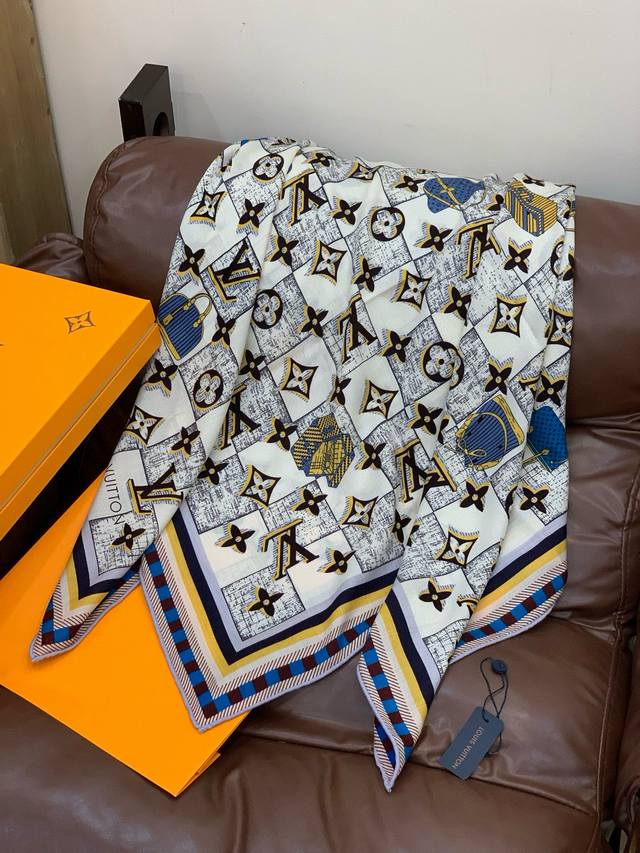 Lv X Tm 140 Shawl DDD 140 Top-Grade Velvet Double-Sided Tonal Shawl DDD This L Multicolor shawl is from the collaboration between Louis Vuitton and renowned Japanese artist Takashi Murakami. It's a soft velvet blend dyed in a clean color, then adorned with a vibrant Monogram pattern, showcasing Shiba Moku's playful interpretation of the brand's elements. It can be paired with other accessories from the same collection to create an elegant look. DDD 135 X 135 cm DDD Height X Length DDD 30% Silk 70% Cashmere DDD Monogram Multicolor Print DDD Inkjet Print DDD Louis Vuitton Logo DDD