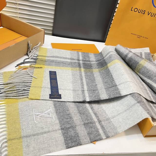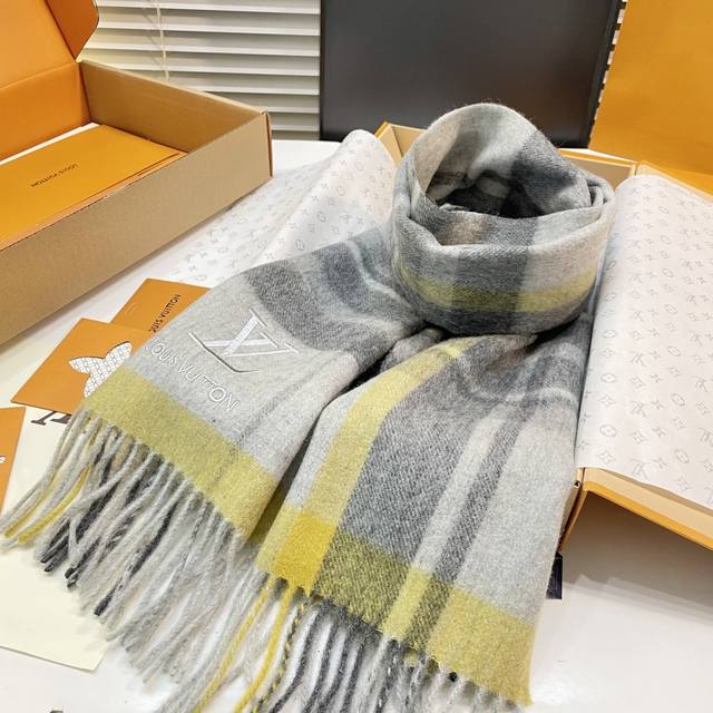 New Arrival! A super stylish and versatile LV cashmere scarf, absolutely top-quality and incredibly cost-effective. The latest export-grade men's and women's cashmere scarf features a delicate cashmere jacquard texture and is extremely versatile. It can be paired with casual jackets or business suits