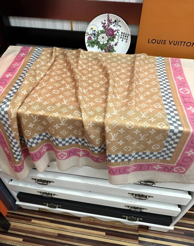 New Arrival Lv 2025. The latest top-tier design is absolutely stunning! Truly amazing! This double-sided ring-patterned long fleece scarf is truly beautiful in person. The shawl with its printed design is impeccable, with attention to detail evident throughout. The scarf exudes a high-end aura while remaining exquisitely refined. Highly recommended for VIPs