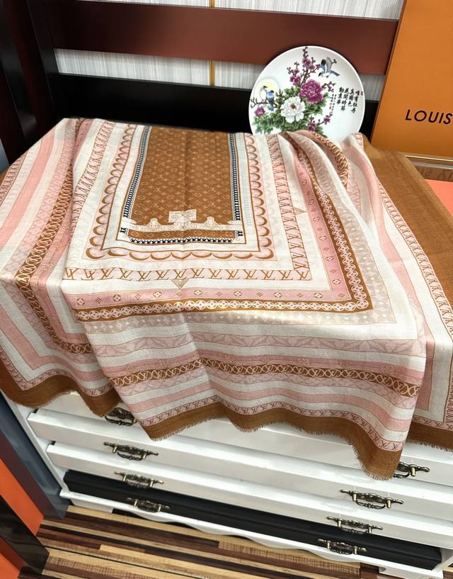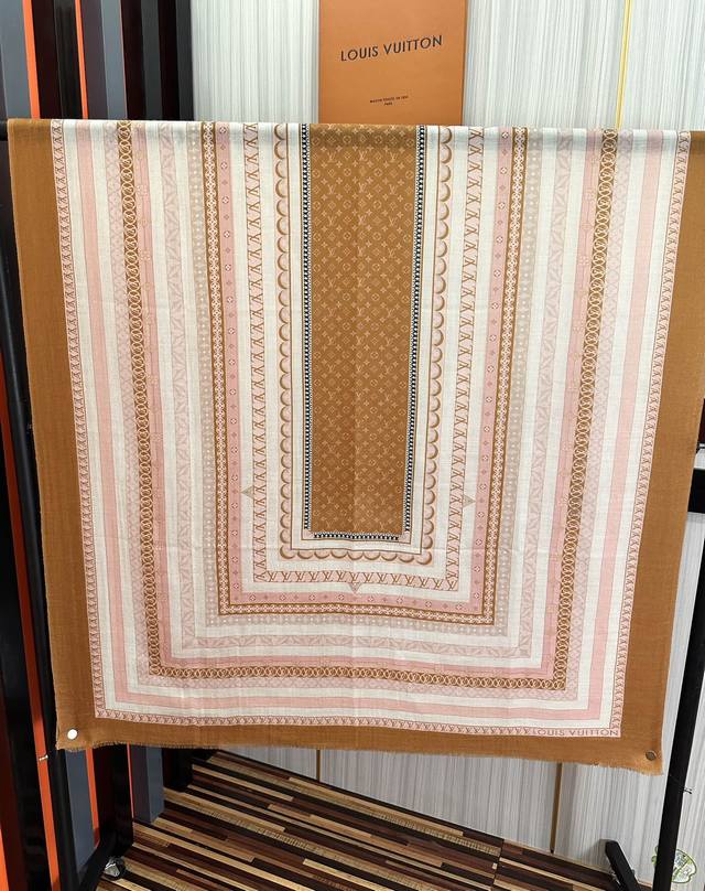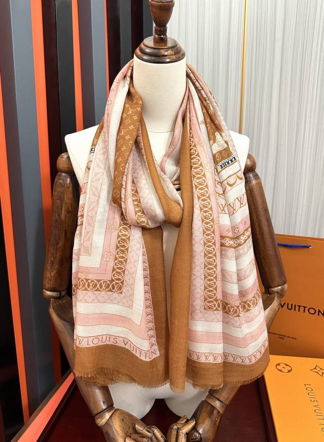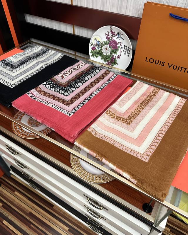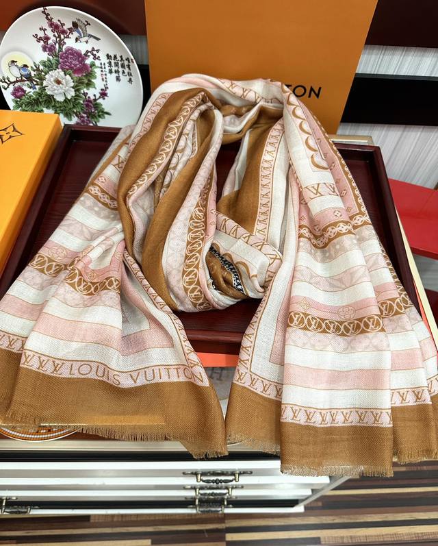 New Arrival! LV's latest 2025 design is stunning! A double-sided 300-count ring-patterned cashmere long scarf. The actual product is truly beautiful. The shawl with its printed design is impeccable, with attention to detail. The scarf exudes a high-end aura while remaining exquisitely crafted. Highly recommended for VIPs! Definitely worth buying. Size: 100X200Cm. Material: Cashmere, 3 colors.