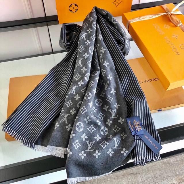 New Arrival! LV's latest top-tier high-end design, truly beautiful in person. This shawl with its printed design is impeccable, with attention to detail. The scarf exudes both presence and exquisite craftsmanship. Highly recommended for VIPs, definitely worth buying! Size: 70X200Cm, 2 colors, Material: Cashmere.