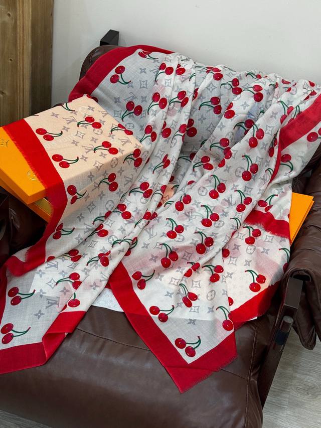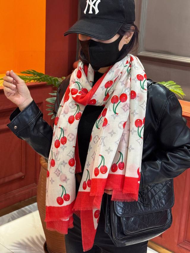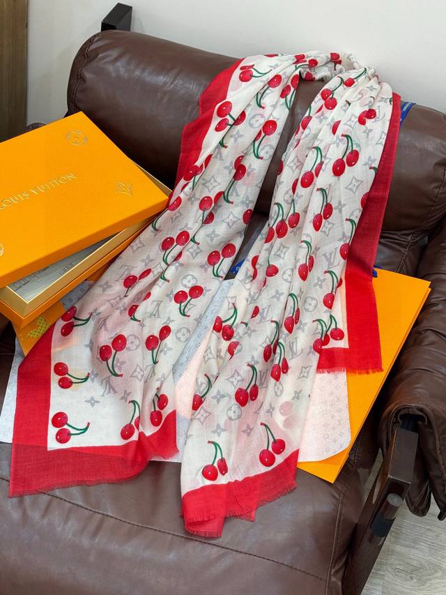 New arrival: the new Cherry Lv Cashmere Square Scarf. The Lv x Tm Monogram Ceri