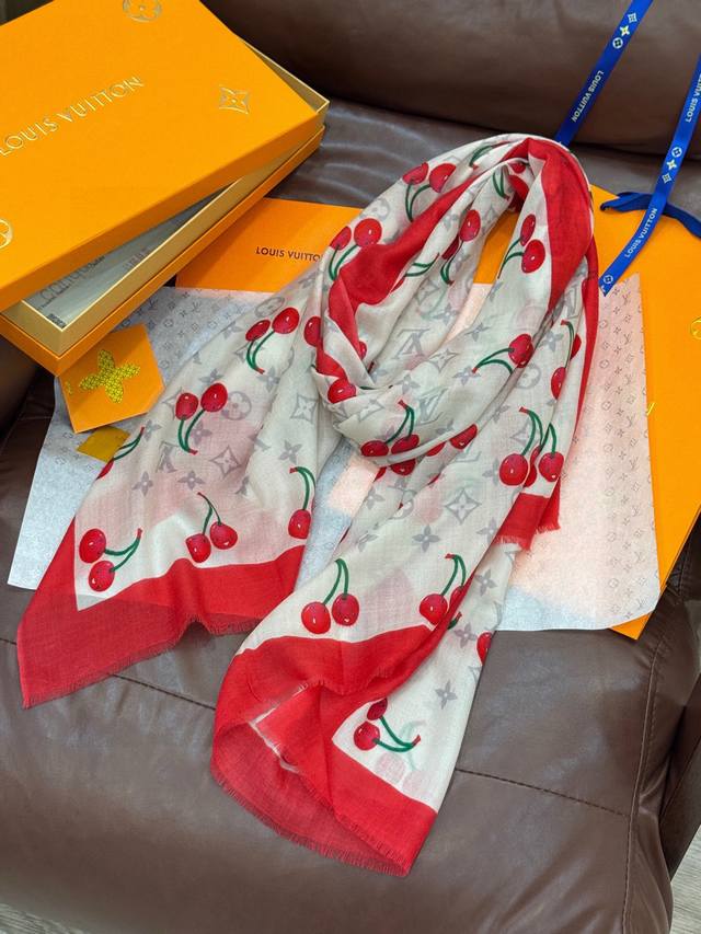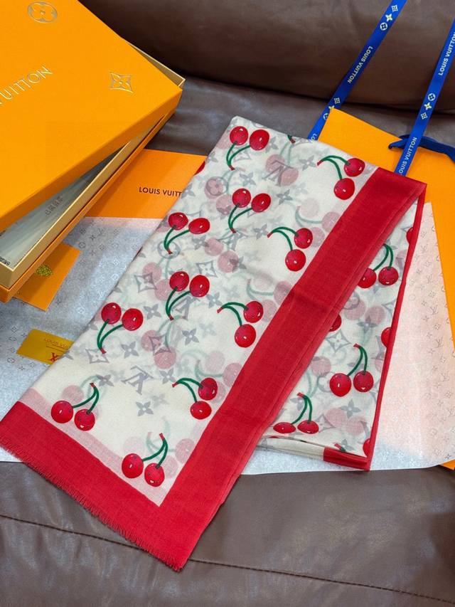 New arrival: the new Cherry Lv Cashmere Square Scarf. The Lv x Tm Monogram Ceri