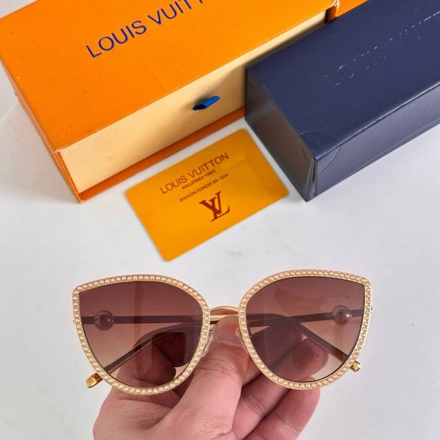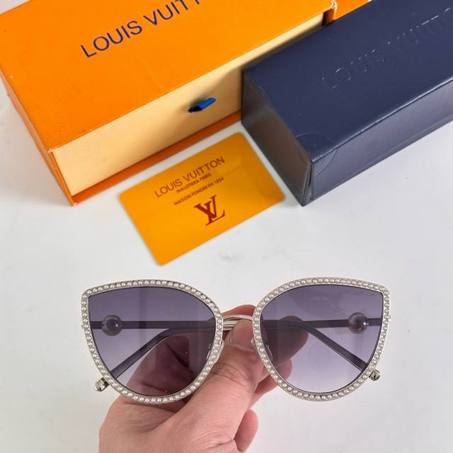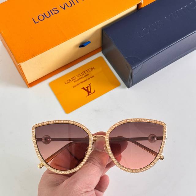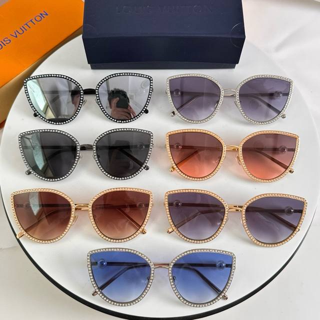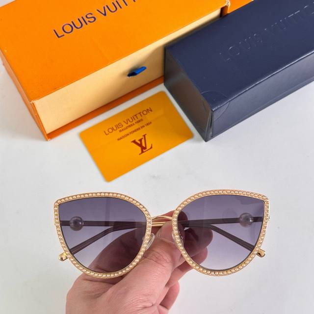 New Louis Vuitton Lv women's glasses pearl Cat Eye fashionable and versatile pearl cat eye sunglasses Z1995U