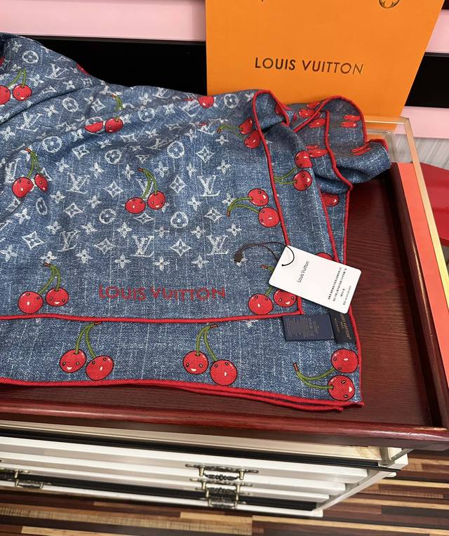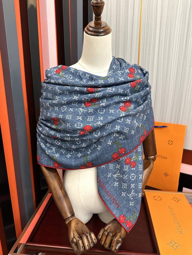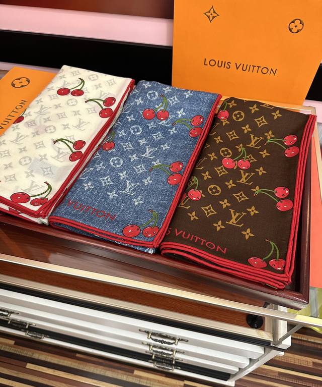 New Lv 2025 Double-sided Cherry Scarf - Classic and elegant, exuding sophistication. The new season's fabric is incredibly high-end, truly super soft, silky smooth, and very resilient, not easily snagged! This year's new series - the design is absolutely stunning! A scarf gives you the perfect match [lips]. The effect when worn is simply elegant and incredibly graceful, very dynamic. Elegant and textured. A must-have for fashionistas! The effect when worn is undeniably beautiful, and it complements clothing, shoes, and bags perfectly [beer]. The actual product is even more beautiful. Size: 140X140, Material: 30% silk + 70% silk cashmere, 3 colors available.