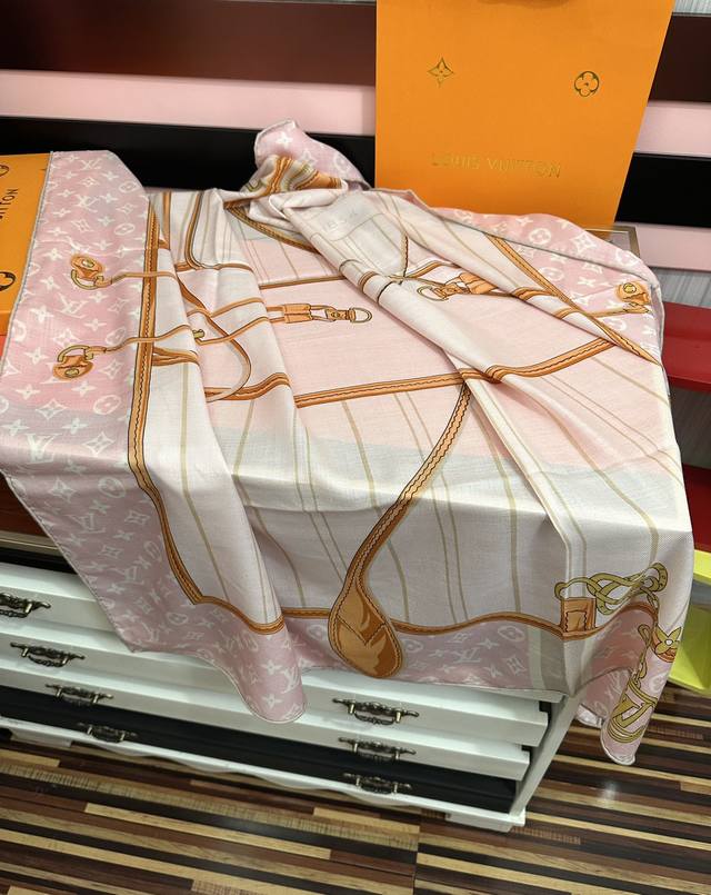 New Lv 2025 Double-sided same color classic elegance~ The new season's fabric is super high-end, truly super soft, silky smooth, and very resilient, not easily snagged! This year's new series~ I'm really amazed by this design. A scarf will give you the best match [lips] The effect on the body is simply elegant and temperamental, very lively. Layered and elegant texture. A must-have for perfume lovers. The effect on the body is really beautiful, no need to say more. It looks even better with clothes, shoes and bags [beer] The actual product is definitely more beautiful. Size: 140X140, Material: 30% silk + 70% cashmere