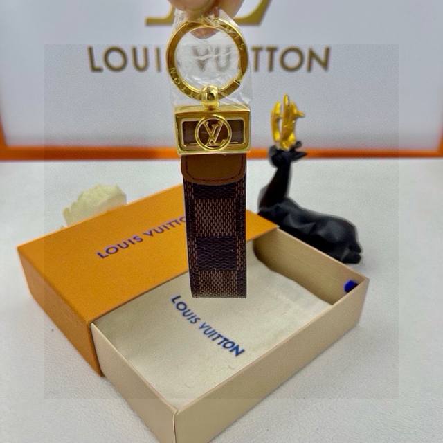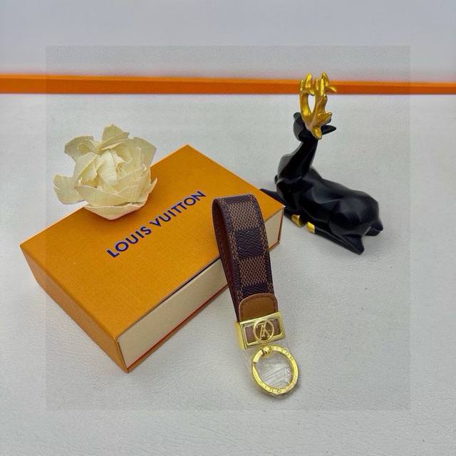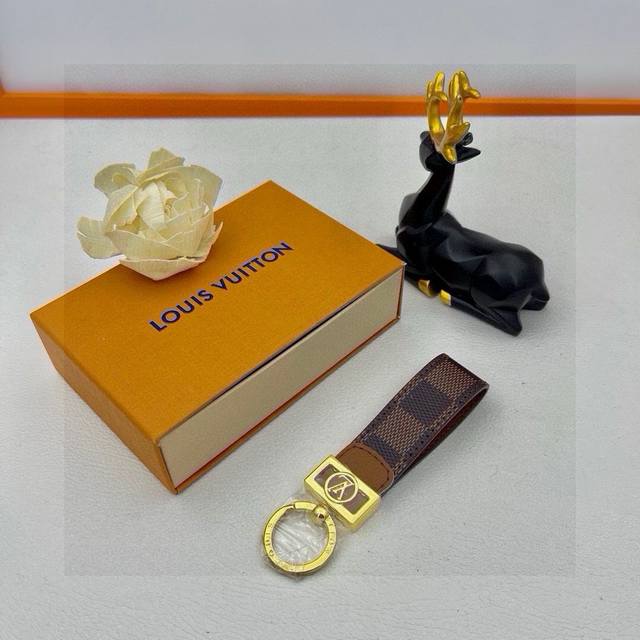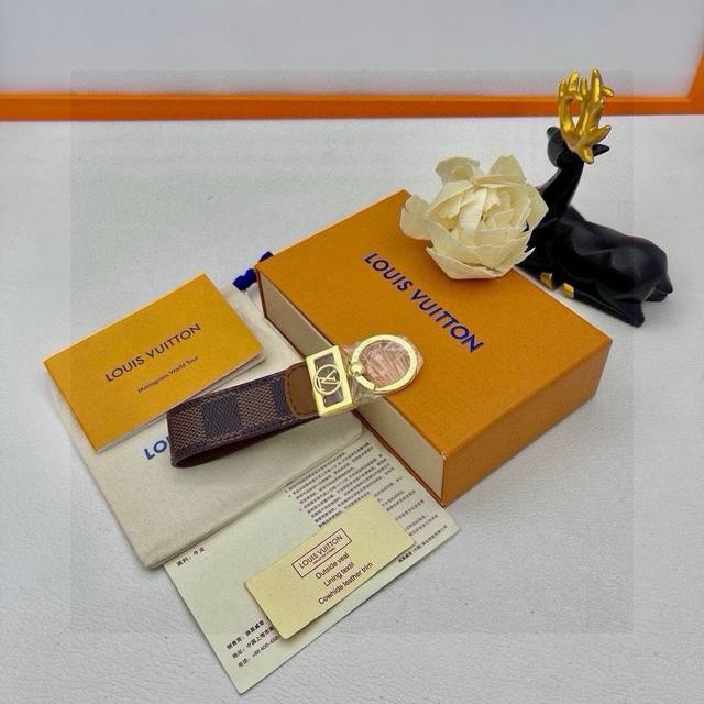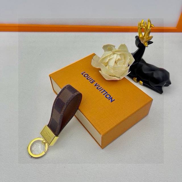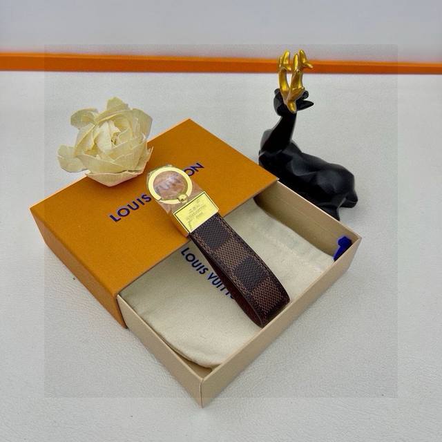 Original image and packaging. A one-to-one replica of the Louis Vuitton keychain M65221. This classic Monogram design is durable and ideal for Dragonne keychains, creating a practical and stylish accessory. The 24K vacuum-plated hardware is stylish and the packaging is excellent. I particularly like this model. It's simple, beautiful, and looks upscale. It comes with a horseshoe buckle, a must-have for car keys.