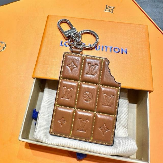 Original image and packaging. Louis Vuitton official website leather chocolate keychain accessory. Versatile imitation food bag pendant. Wear-resistant Twist bag charm and keychain, worn by influencers and streamers. This Twist bag charm features a lively and vivid Twist logo. The stylish design is inspired by Louis Vuitton's classic leather goods collection. Perfect for both personal and gift-giving, this bag charm can also be worn as a keychain or pendant.