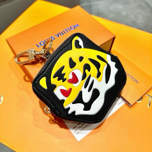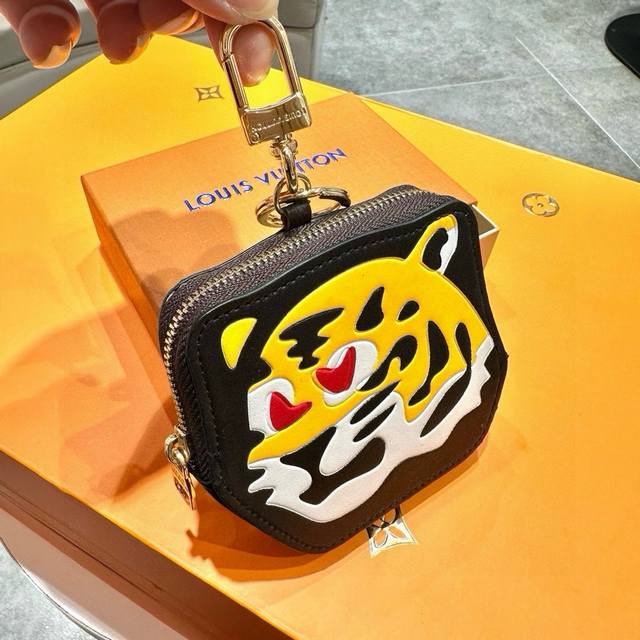 Original image and packaging. Louis Vuitton official website M81078 Tiger Coin card holder, keychain, and bag charm. Exclusive original product. Louis Vuitton cartoon duck keychain pendant, car charm, and coin purse. Made of top-quality imported PU material and imported steel hardware. Original logo. Can be used as a car ornament, pendant, or keychain. Truly exquisite. Feels amazing! Cute bag charm, couple's car keychain.