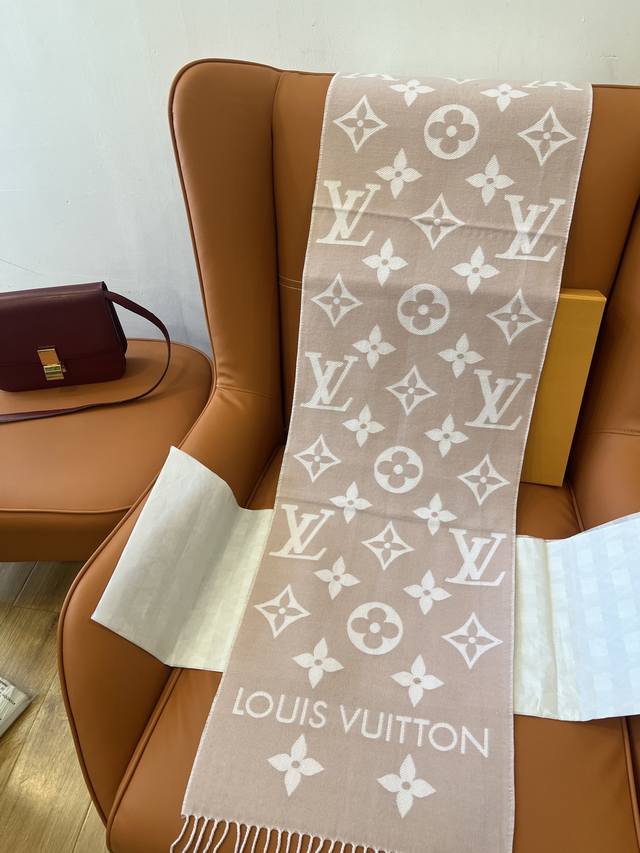 Our top-quality scarf is finally shipping! Don't miss out if you're looking for a great deal, but avoid it if you're looking for a bargain! This year's bestseller, the LV Essential scarf, elongates the elements of the classic Monogram pattern for a refreshing look. Sheep wool adds a soft, warm feel, while the Louis Vuitton logo and tassel trim complete the look. This casual alternative to the Reykjavik and Logomania scarves is a great choice.