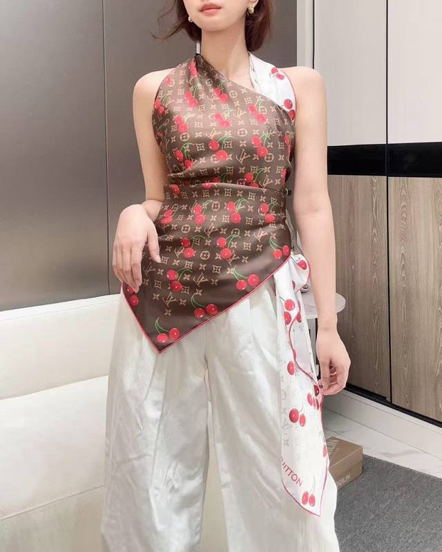 Ouyang Nana's style, extremely rare in boutiques! This exquisite double-sided print Louis Vuitton x Takashi Murakami Monogram Cerise silk scarf is from the Louis Vuitton x Takashi Murakami reissue series, reinterpreting the classic brand logo with a bright artistic style. The Monogram background and Murakami's colorful cherry pattern create a vibrant summer style, perfect for pairing with other items in the same series. 90 x 90 cm (Height x Length) 100% Silk