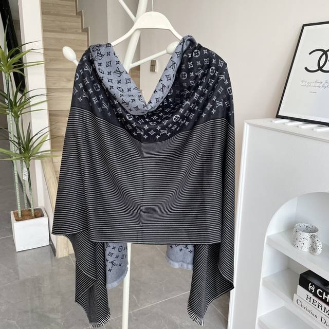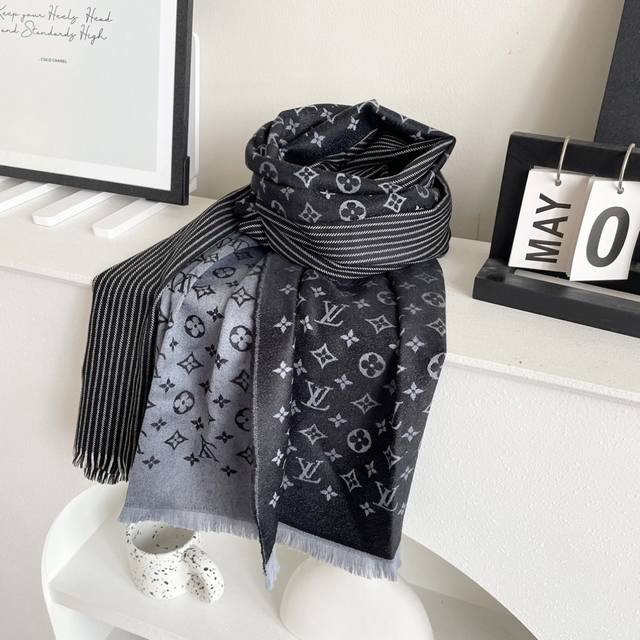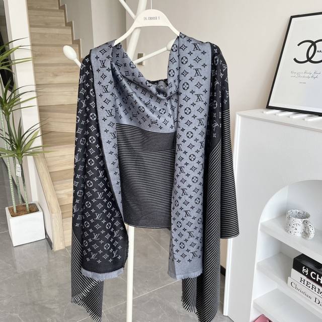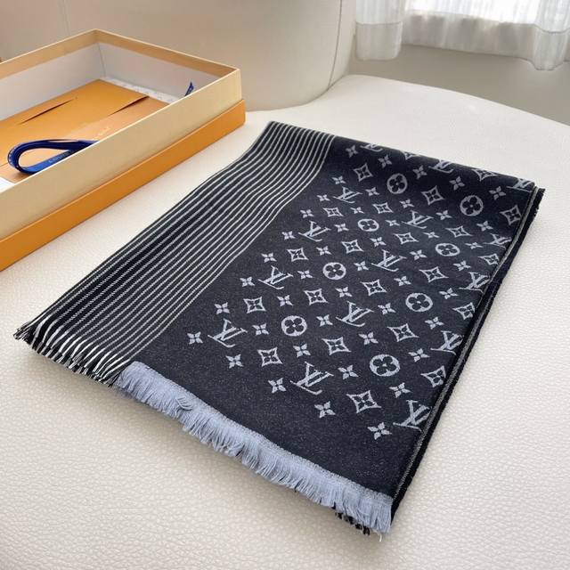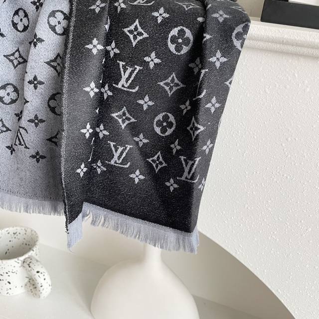 Scarf model M71227, a Louis Vuitton heavy-duty original, exactly the same as the new color from the LV boutique, exported overseas. The latest limited edition double-sided color-blocked version from the boutique, of extremely high quality, with exquisitely crafted high-density lettering that is incredibly clear. The fabric is made of the highest grade highland Kashmir wool and silk, just like the boutique version, soft, silky, luxurious, and textured! The color combination is very aristocratic, with strong contrasts, very pleasing to the eye. This shawl blends silk and wool, soft and warm, sure to be a hit this year, grab it now! 70*200, 60% silk, 40% wool.