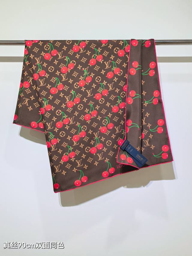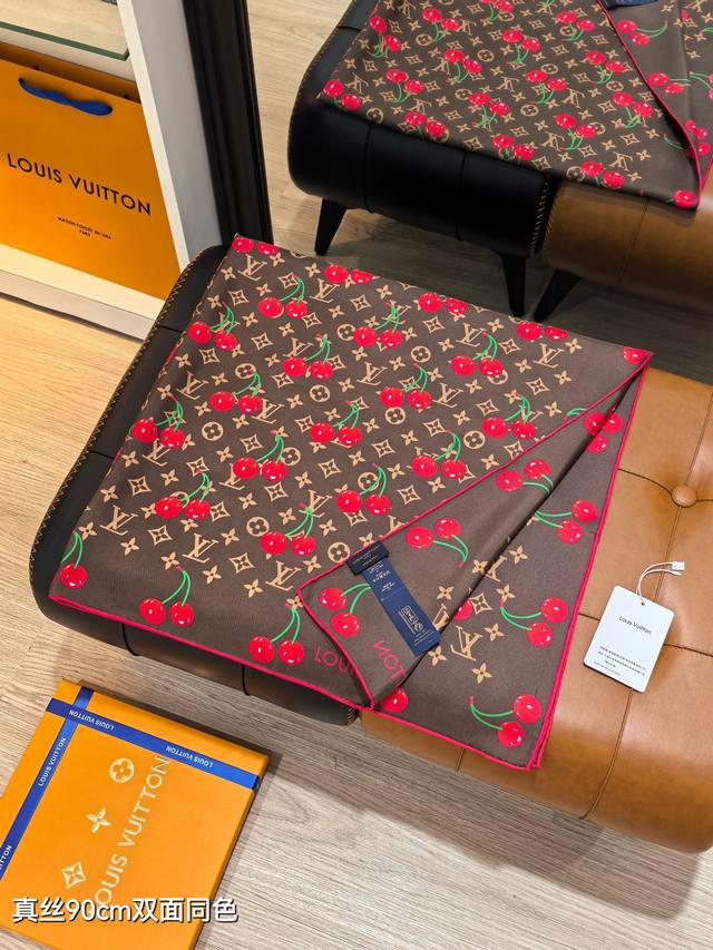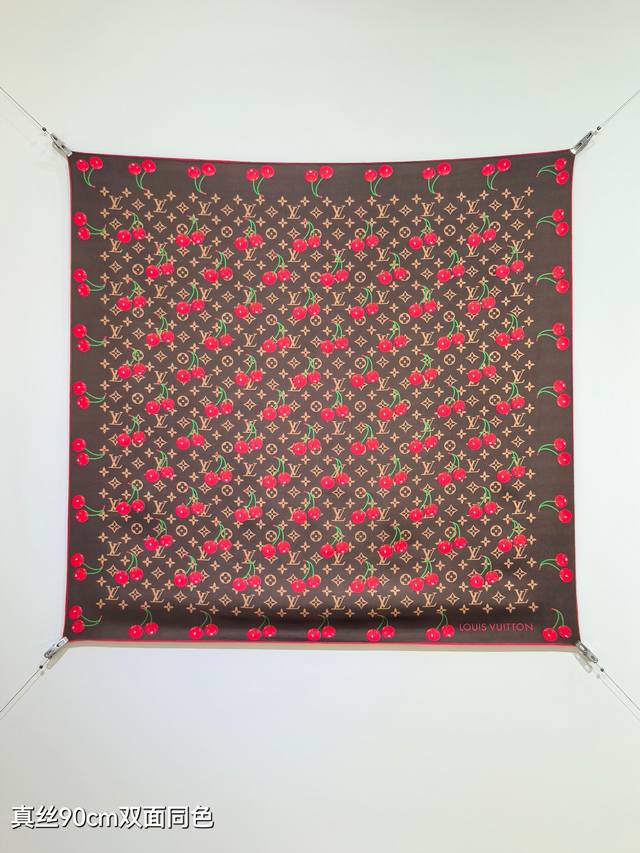 / Slv2535 18 momme double-sided 90X90Cm twill silk Lv Lv X Tm Monogram Cerise cher