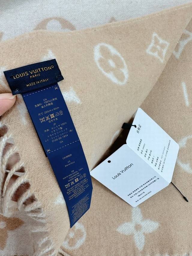 Special Approval: DDD Reykjavik 2.0 scarf is made of soft cashmere featuring the Monogram floral pattern and the letter Lv, interspersed with single letters of the brand name, giving a modern twist to the classic design. The extended length is perfect for wrapping around the neck and can also be worn as a balaclava. DDD 220 x 40 cm, tassels not included, 100% cashmere DDD Monogram pattern DDD Tassel trim DDD