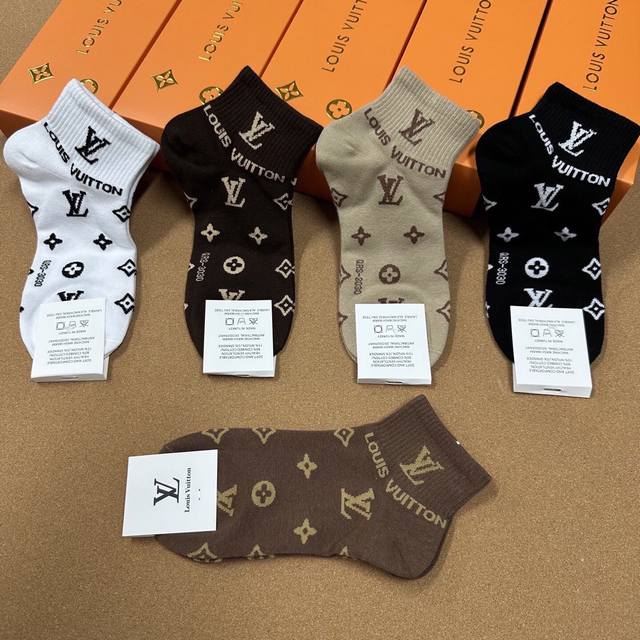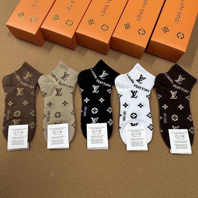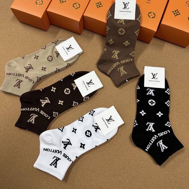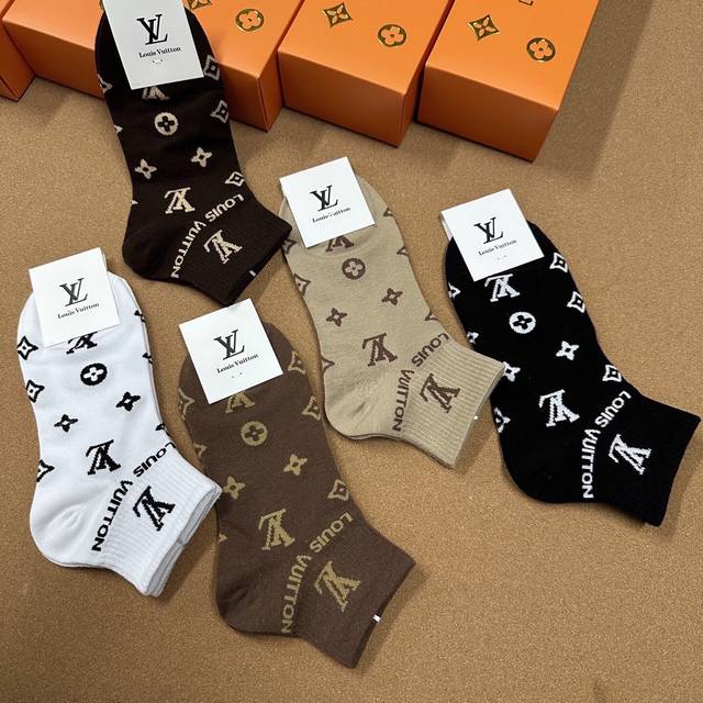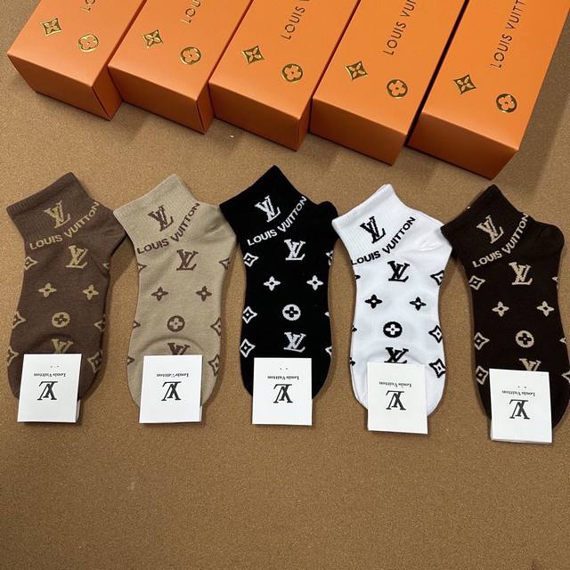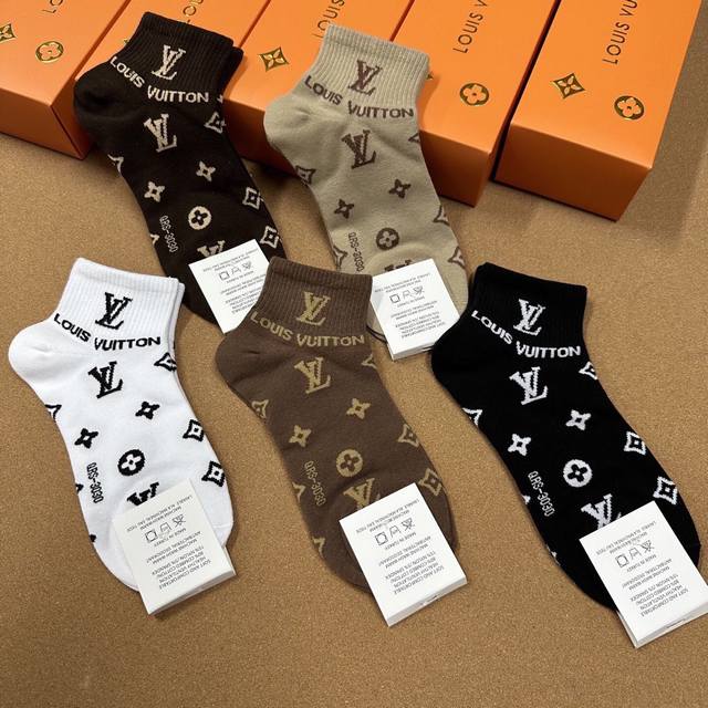 Special Louis Vuitton socks, one box of five pairs of jacquard Louis Vuitton classic logo, made of pure cotton, breathable and comfortable, super nice and popular small items, big brand out, a must-have for fashionistas, super easy to match