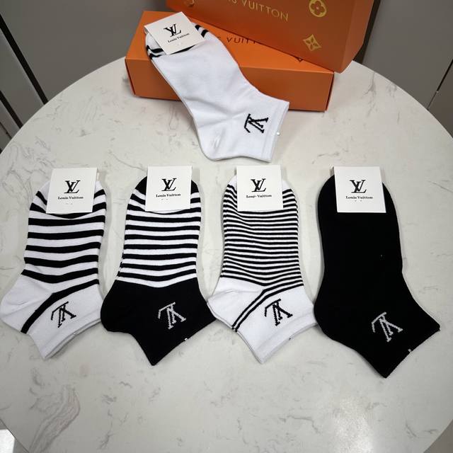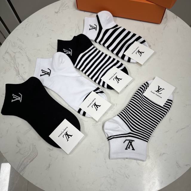 Special Louis Vuitton women's socks, five pairs per box, made of pure cotton, soft and comfortable, with jacquard classic LV logo, super good-looking, a must-have for fashionistas, super easy to match