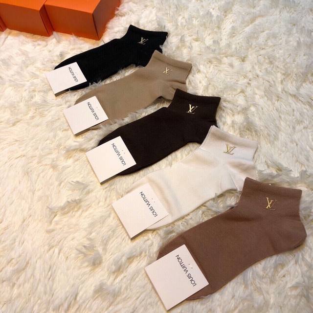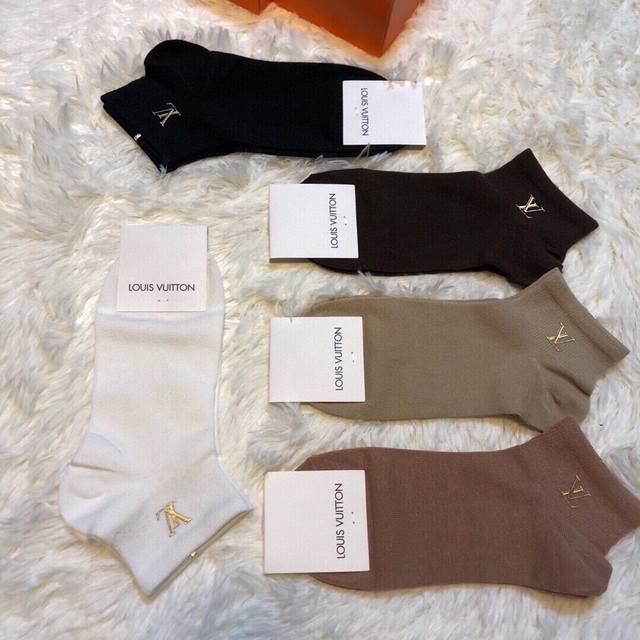 Special Louis Vuitton women's socks, five pairs per box, made of pure cotton, soft and comfortable, with the classic LV logo hot-stamped, super good-looking, a must-have for fashionistas, and super easy to match.
