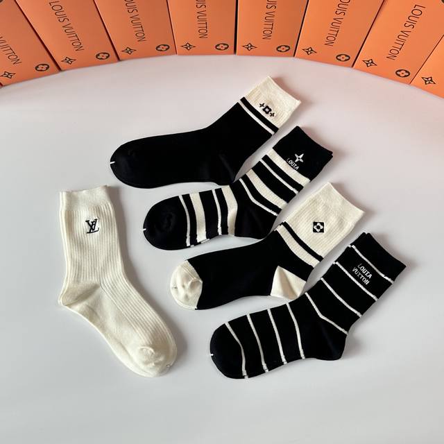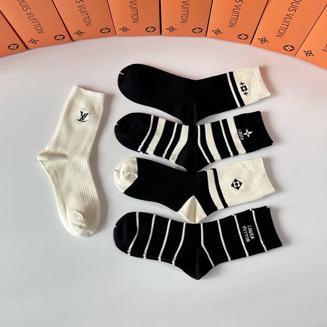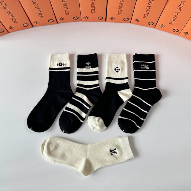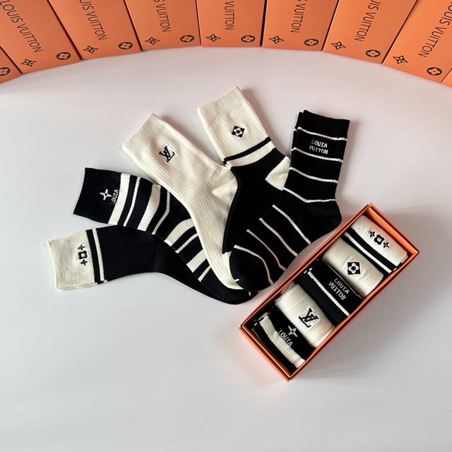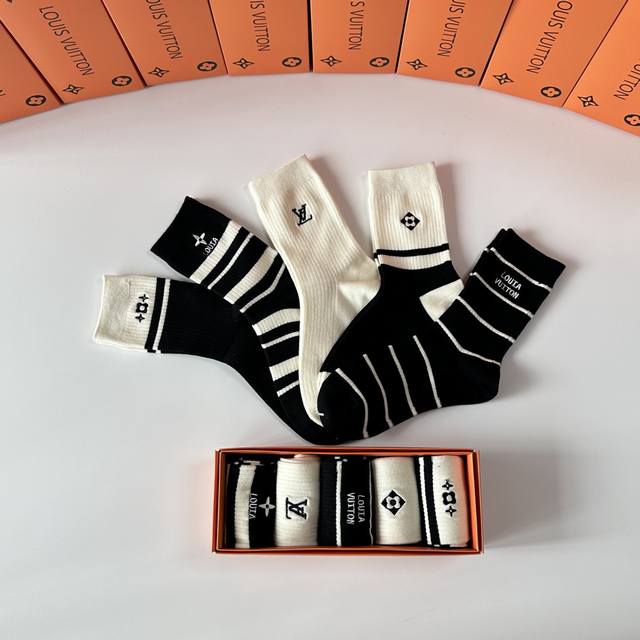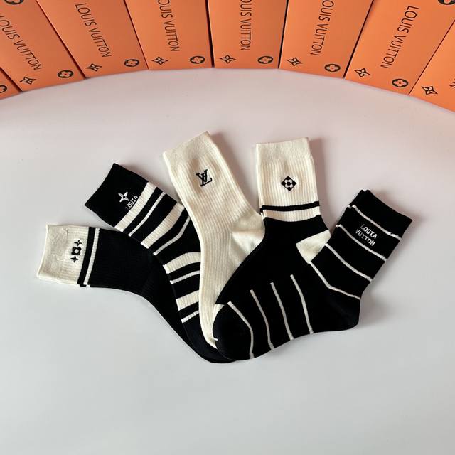 Special Packaging DDD Louis Vuitton New Wool Embroidered Mid-Length Slouch Socks! Five pairs per box, same style as in boutiques, a must-have for trendsetters, super easy to match DDD