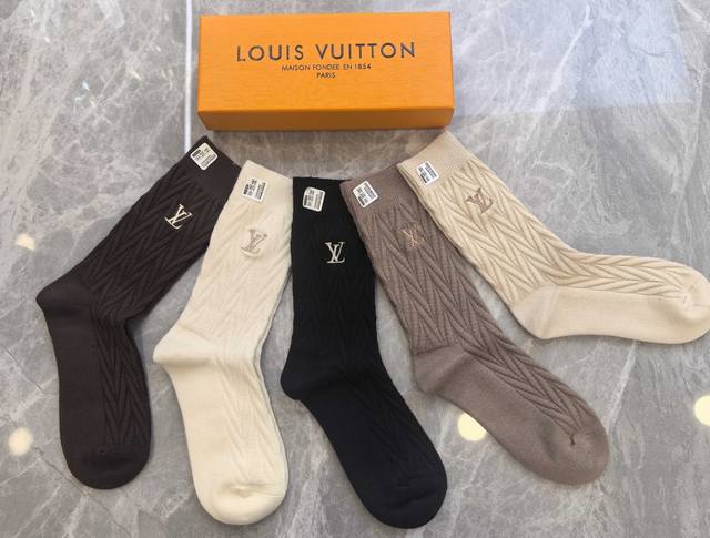 LV Louis Vuitton New Cashmere Mid-Length Slouch Socks! Five pairs per box, same style as in boutiques, a must-have for trendsetters, super easy to match.