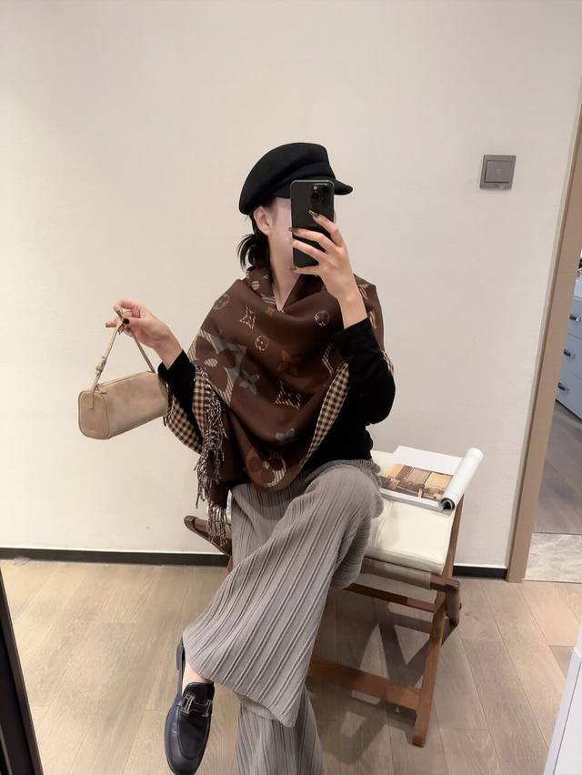 This is a double-sided gradient jacquard scarf from Louis Vuitton, featuring a classic and perfectly designed gradient jacquard pattern, subtly displaying the LV logo. Highly recommended! Don't miss out! Buy it from a reseller for over 3800 RMB