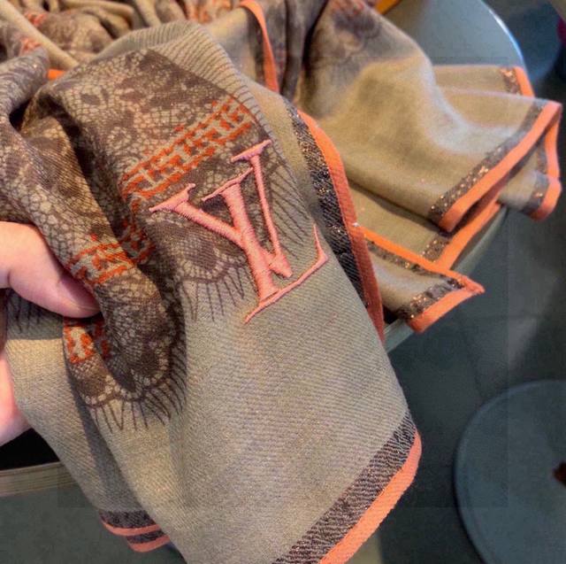 This is undoubtedly a new bestseller, a Louis Vuitton item. The four-sided metal frame creates an ultra-luxurious designer look. The solid color paired with the classic logos of the two designers exudes understated luxury. The continuous metallic threads add a touch of allure. Made with Kashmir cashmere, it's incredibly soft to the touch. Using custom-supplied materials, it measures 90*200cm. Don't miss out, limited quantities available! DDD