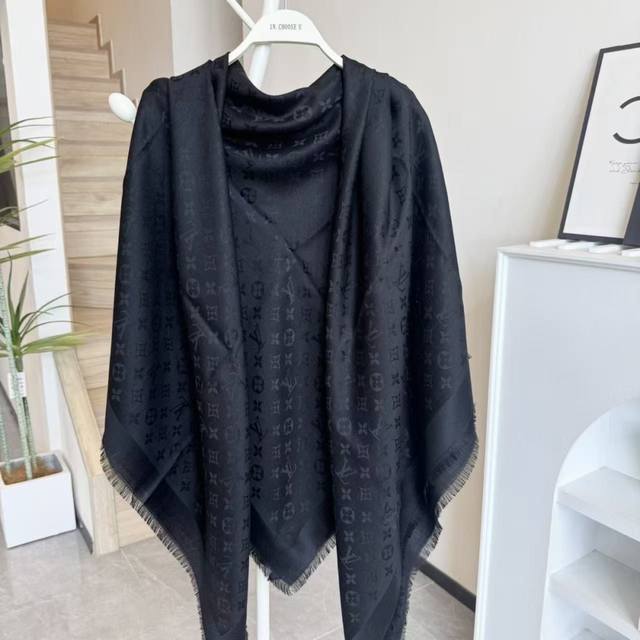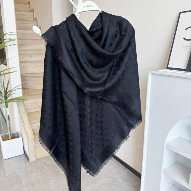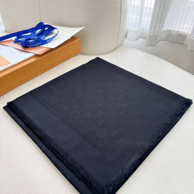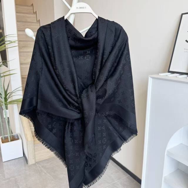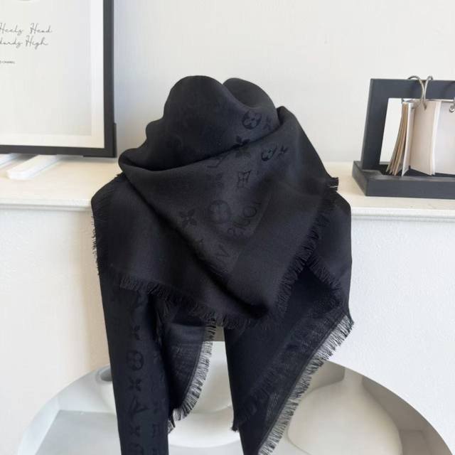 This Louis Vuitton square scarf/shawl features classic gold thread paired with a luxurious silk-wool blend, making it a perfect match for ready-to-wear and accessories. Size: 140 x 140 cm. Fabric: 57% wool, 43% silk.