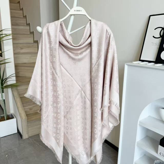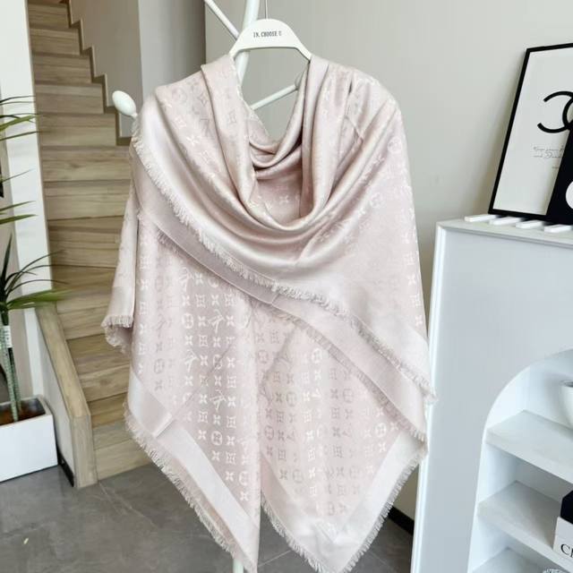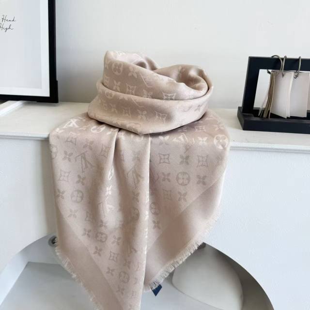 This Louis Vuitton square scarf/shawl features classic gold thread paired with a luxurious silk-wool blend, making it a perfect match for ready-to-wear and accessories. Size: 140 x 140 cm. Fabric: 57% wool, 43% silk.
