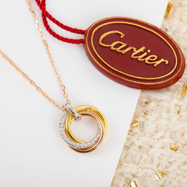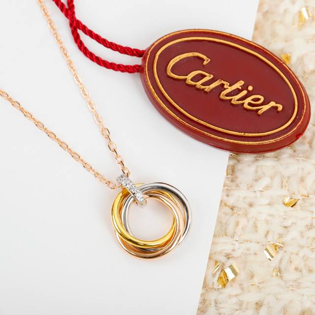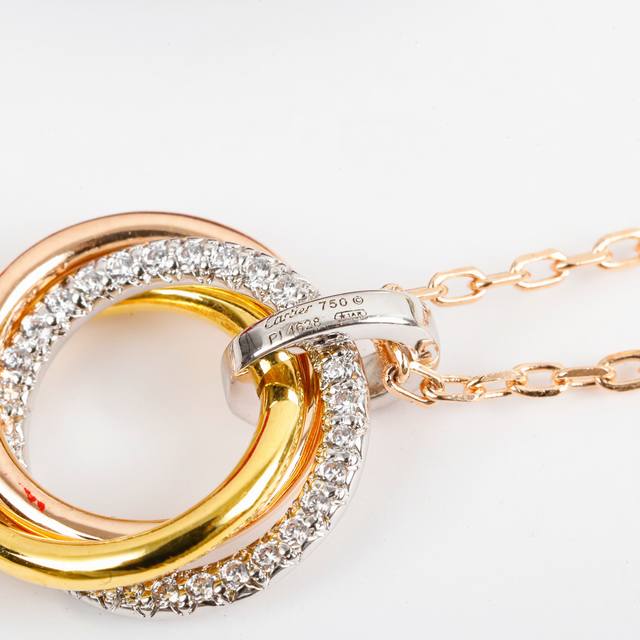 203633 We produce the Trinity necklace (Zp13780). Be sure to choose the only supplier that genuinely purchases and develops genuine jewelry from the original. Custom-made 18K gold and diamond versions are available. We only produce authentic gold items. For pricing, please inquire. In 1924, Mr. Louis showcased his talent by designing the Trinity three-color gold ring, which has since become a Cartier classic. Three intertwined rings express sincere emotions. Its timeless and extraordinary design inspiration is a symbol of exceptional style and elegance. High-grade two-tone electroplating with hypoallergenic treatment, using 3-color vacuum electroplating significantly increases costs, ensuring complete consistency with the original.