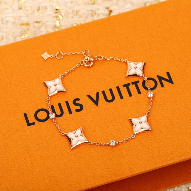 210661 We produce four-flower bracelets, customizable with genuine gold and diamonds. We only make genuine gold items that match the original. Large quantities are available; inquire for more information. This Color Blossom Bb bracelet celebrates the blooming of the Monogram flower, paying homage to this classic element created in 1896 by Georges Vuitton, son of the founder of Louis Vuitton. The lustrous shell is sculpted and inlaid with 18K gold, adorned with sparkling diamonds. The adjustable chain exudes a gentle elegance whether worn alone or paired with other pieces from the same collection. The entire bracelet is made of 925 silver with thick gold plating for longer color retention.