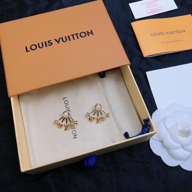 Absolutely stunning! Louis Vuitton earrings, high-end custom-made original, thick gold plating, elegant, sophisticated, classy, and versatile. Simply gorgeous! Real photos, high quality.