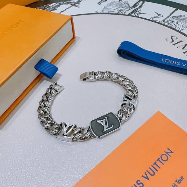 Authentic New High-Quality Louis Vuitton Lv Bracelet, Genuine Factory-Direct New Model, Retro-Inspired, Trendy And Fashionable, Suitable For Both Men And Women, Couple's Style, Rock Punk Thai Silver Style, Retro Elements, Trendy And Versatile, Official Website Same-Style Necklace With The Latest Chain Design And Higher Quality