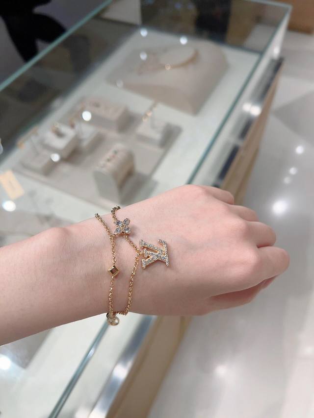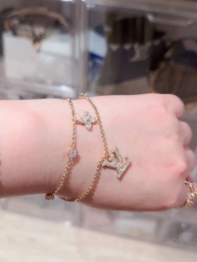 Exquisitely crafted Louis Vuitton full-diamond double-layer LV bracelet, absolutely stunning! Highly recommended! A simple yet classic logo design! A must-have! Absolutely gorgeous! Super meticulous craftsmanship! Hand-set! The rhomboid and floral diamonds are fancy-cut diamonds