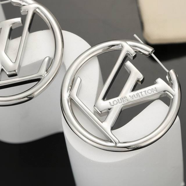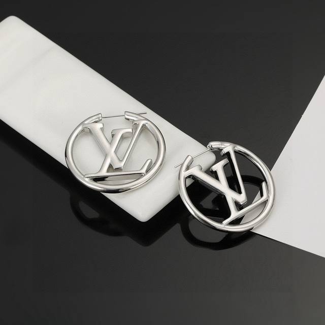 Exquisitely crafted Louis Vuitton letter stud earrings, embodying superb craftsmanship, use a forged, dazzling Lv Twig polish to achieve a natural embodiment of the classic Lv letter, exuding brand style. A celebrity-endorsed classic and versatile style, available in gold and silver, two sizes: 4cm and 4.3cm in diameter.