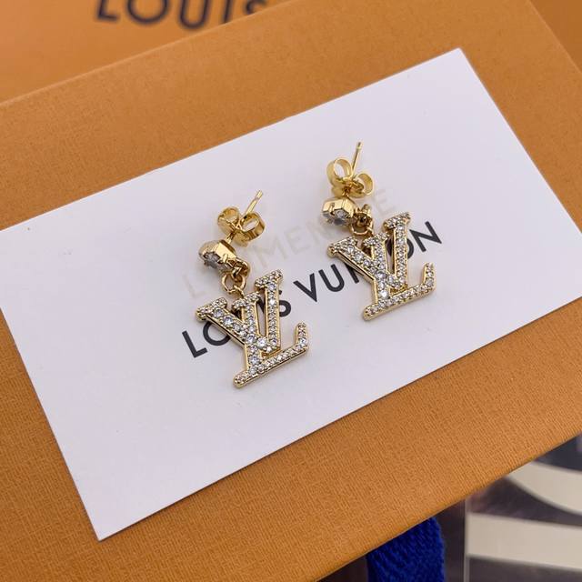 Exquisitely crafted Louis Vuitton logo stud earrings with square diamond pendant, absolutely stunning! Highly recommended! A simple yet classic logo design! A must-have! Absolutely gorgeous! Super meticulous craftsmanship! Hand-set! The rhomboid diamonds are fancy-cut diamonds, incredibly expensive! The full diamond finish is super bling and very high-end! It looks amazing on! Very unique! Exquisitely crafted, with an inherent sense of sophistication! Extremely versatile, very timeless, the kind you'll love more and more the more you look at it! Understated yet luxurious, elegant, a timeless classic, a logo that will never go out of style! Matching earrings, necklace, and bracelet are also being developed! Absolutely buy these earrings!