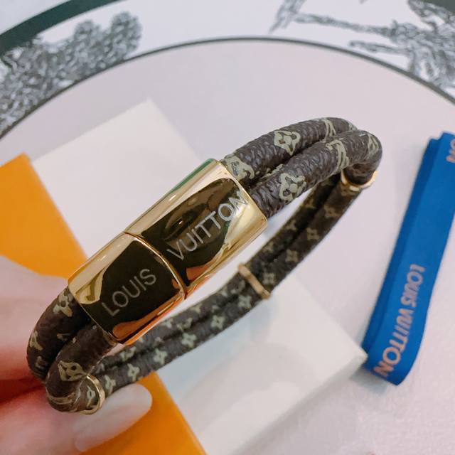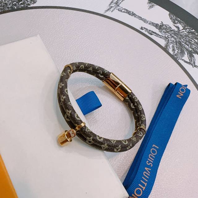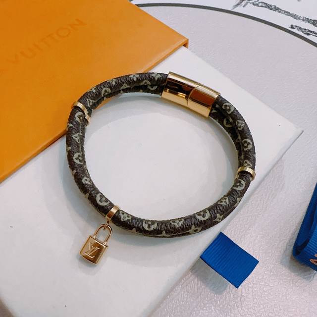 High-quality Louis Vuitton leather bracelet, original quality, new model, retro trendy fashion essential, unisex, suitable for couples, rock punk, Thai silver style, retro elements, blue, understated luxury, trendy and versatile. Same style as the official website, latest model, chain, higher grade, celebrity classic bracelet series, retro. Details match the original, distressed finish, not the glossy version found in the market. This is a consistently popular Louis Vuitton item, very easy to match with trendy clothes.