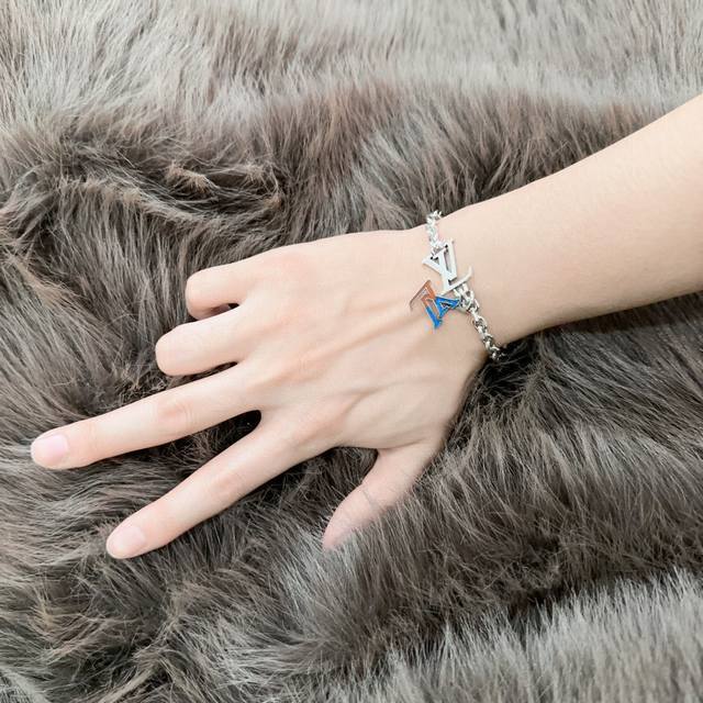 High-quality Louis Vuitton (LV) bracelet, original single item, new model, retro trendy fashion essential, unisex, couple style, rock punk Thai silver style, retro elements, trendy and versatile, same style as the official website, latest necklace, higher grade chain, celebrity classic style bracelet, Cuban chain series retro silver bracelet. Chain length sizes: 22cm, 20cm, 18cm, length can be altered. Details: accurate to the original, distressed finish, not the shiny version found in the market. This is a consistently popular LV style, very easy to match with trendy clothes.