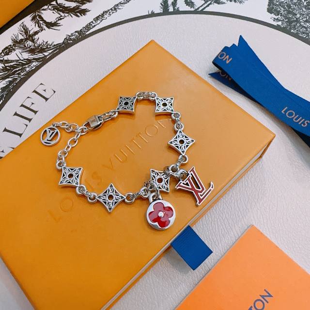 High-quality Louis Vuitton (LV) bracelet, original single item, new model, retro trendy fashion essential, unisex, couple style, rock punk Thai silver style, retro elements, trendy and versatile, same style as the official website, latest model, higher grade chain, celebrity classic style bracelet, Cuban chain series retro silver bracelet. Chain length sizes: 22cm, 20cm, 18cm, length can be altered. Details: accurate to the original, distressed finish, not the shiny version found in the market. This is a consistently popular LV style that goes very well with trendy clothes.