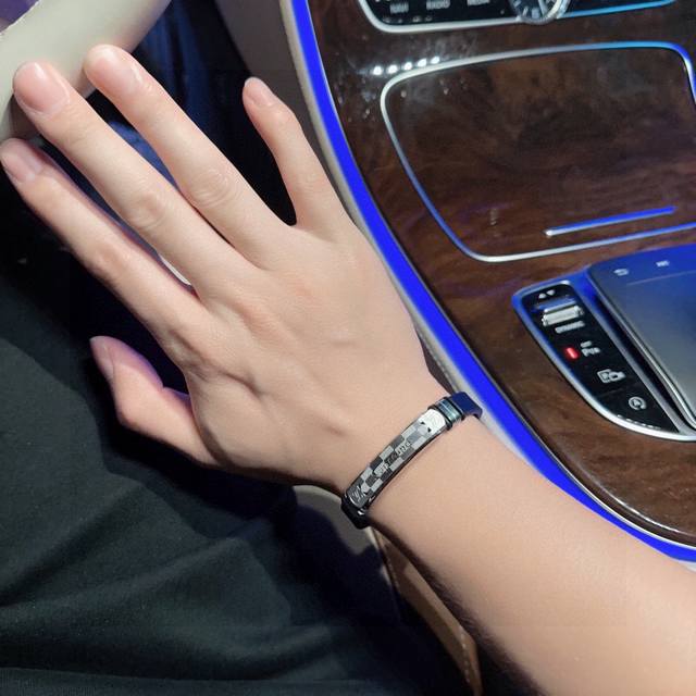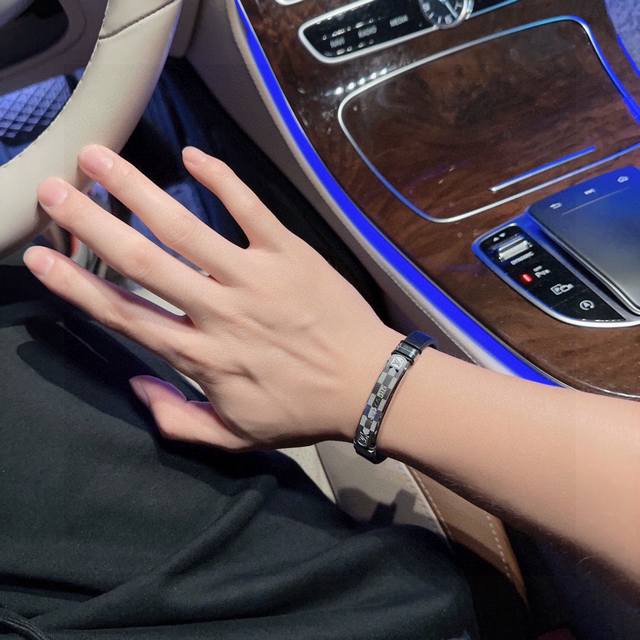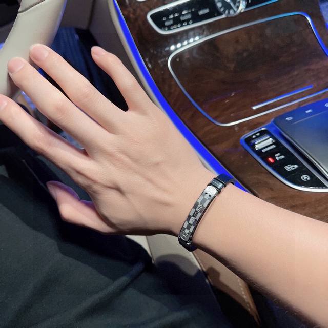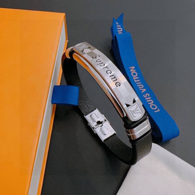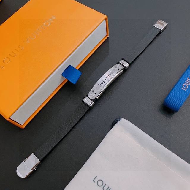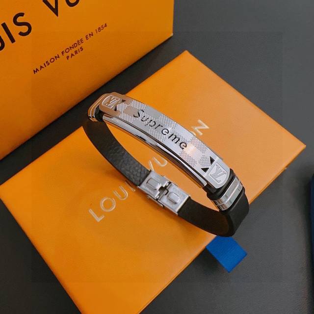 High-quality Louis Vuitton Lv cowhide bracelet, co-branded, original goods, new counter model, retro fashion essential, suitable for both men and women, couples' style, rock punk Thai silver style, retro elements, trendy and versatile, same necklace as the official website, the latest chain is of higher grade, celebrity classic bracelet, Cuban chain series, retro silver bracelet