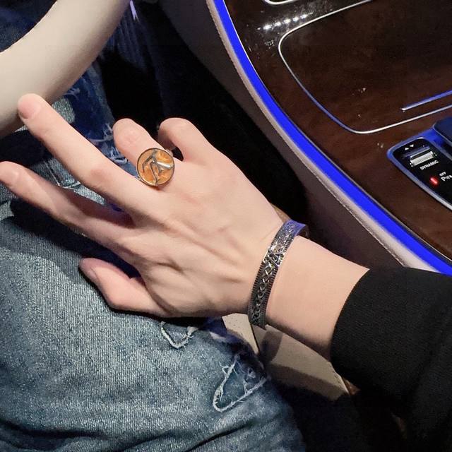 High-quality Louis Vuitton (LV) ring, original single item, new model, retro trendy fashion must-have, unisex, couple style, rock punk Thai silver style, retro elements, trendy and versatile, same style as the official website, latest style, higher grade, celebrity classic series, retro silver ring. Adjustable size. Details match the original, distressed finish, not the shiny version on the market. This is a consistently best-selling LV style that goes very well with trendy clothes.