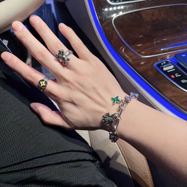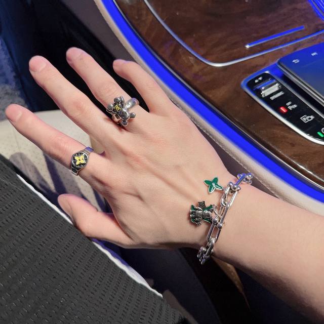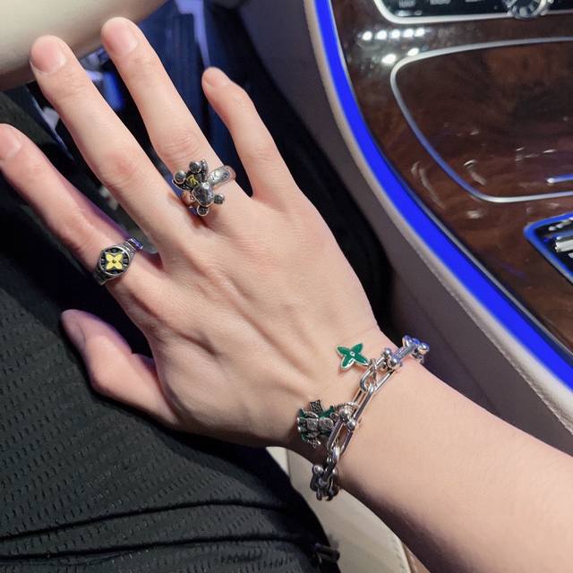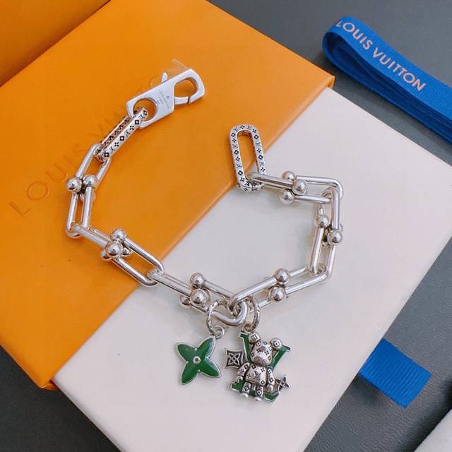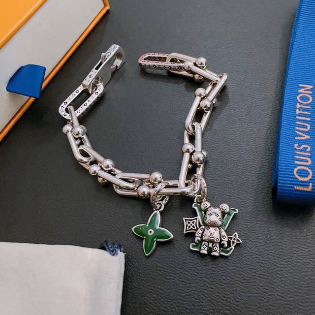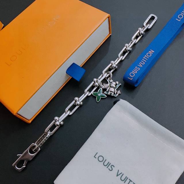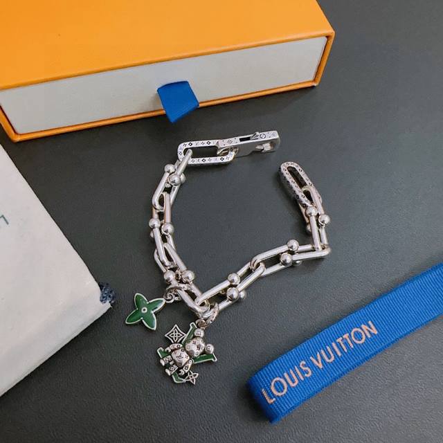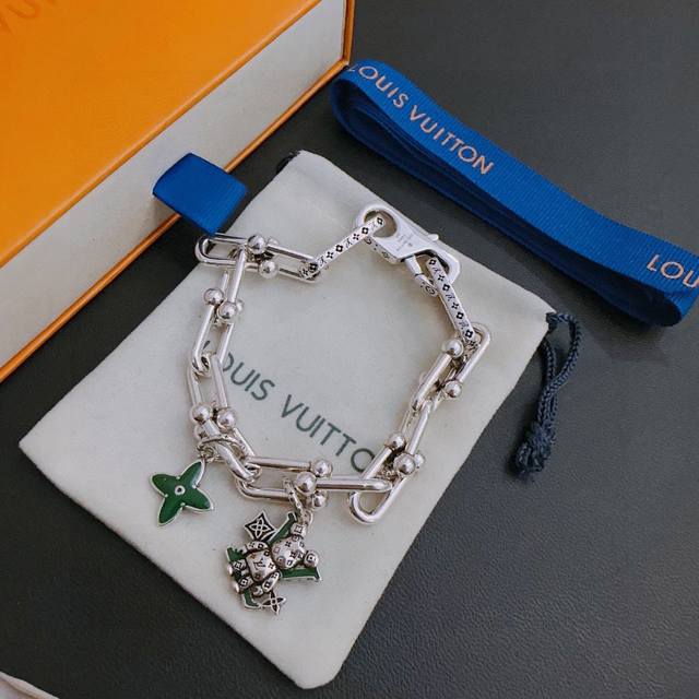 High-quality Lv Louis Vuitton bracelet, original goods, new counter model, retro fashion essential, suitable for both men and women, couples' style, rock punk Thai silver style, retro elements, trendy and versatile, same necklace as the official website, the latest chain, higher grade, celebrity classic necklace series, retro silver bracelet