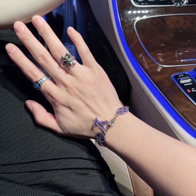 High-quality Lv Louis Vuitton bracelet, original goods, new counter model, retro fashion essential, suitable for both men and women, couples' style, rock punk Thai silver style, retro elements, trendy and versatile, the latest necklace from the official website, the chain is higher grade, celebrity classic necklace series, retro silver bracelet