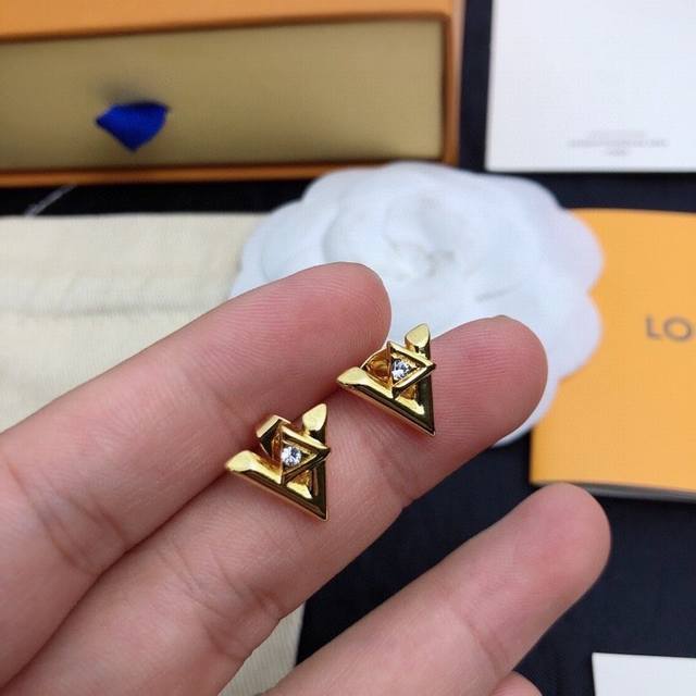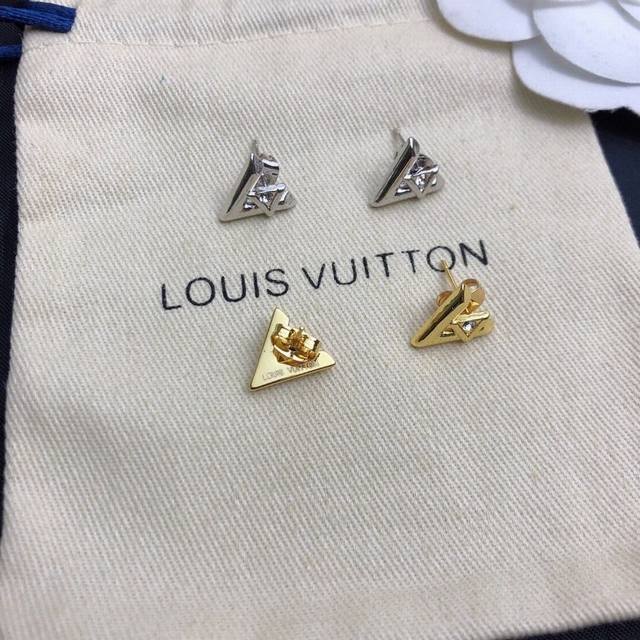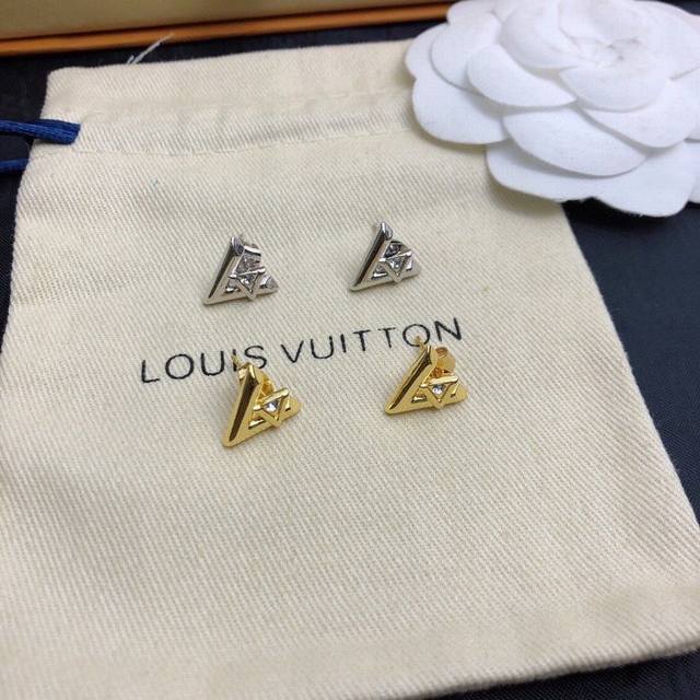 Hot and stylish Louis Vuitton LV earrings, sweeping the fashion world. Runway and street style classic elements with unique insights, high-end and exquisite. Two-tone top-grade electroplating, a must-have. LV letter earrings, full of femininity, superb quality, two colors available.