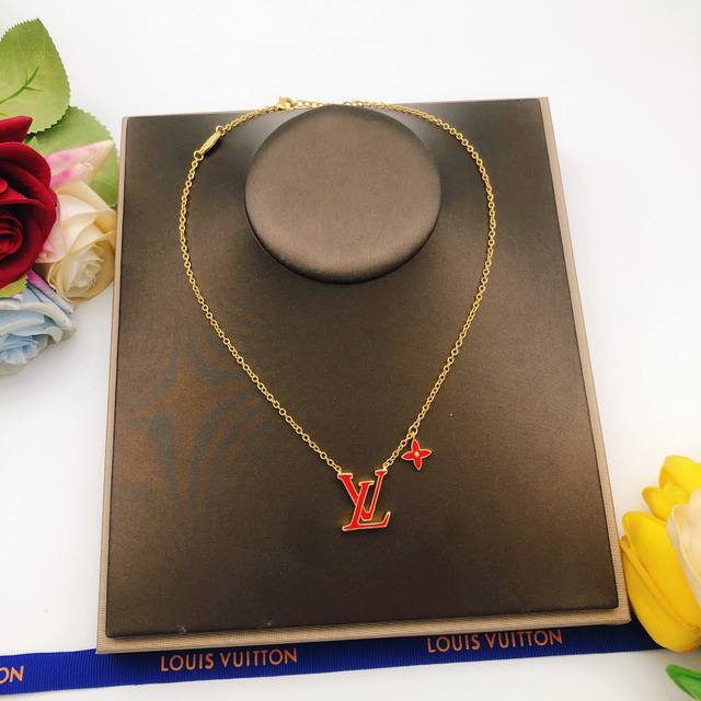 / Item No. Lxl0025 Lv*Latest Red Oil Drip Necklace, identical to Zp, brass materia