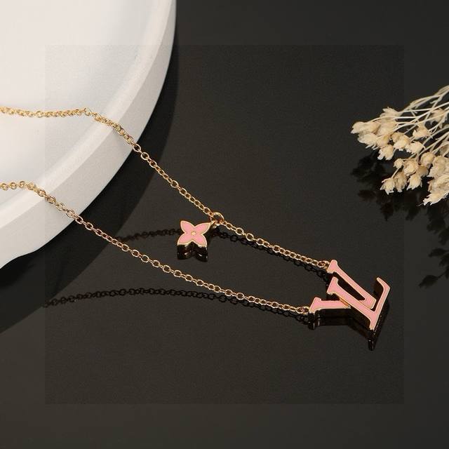 Louis Vuitton letter necklace with a unique and stylish look. The brilliant cut finish makes the surface exceptionally beautiful and eye-catching. Every aspect is well-executed. The overall design is simple yet highly recognizable, creating an elegant and sophisticated look. Available in pink, black, and white.