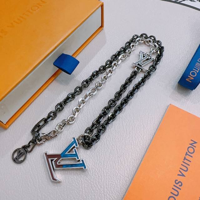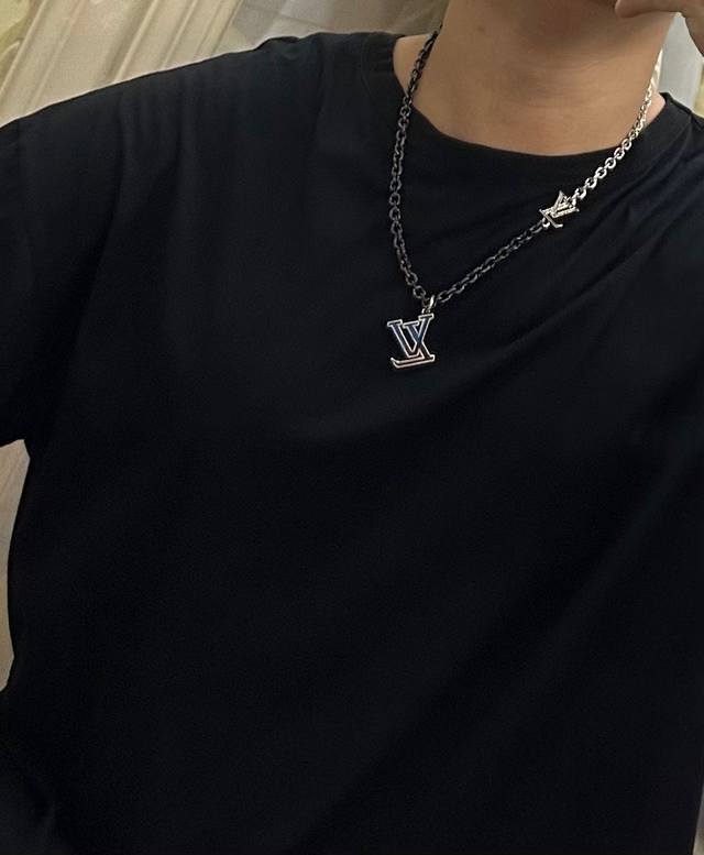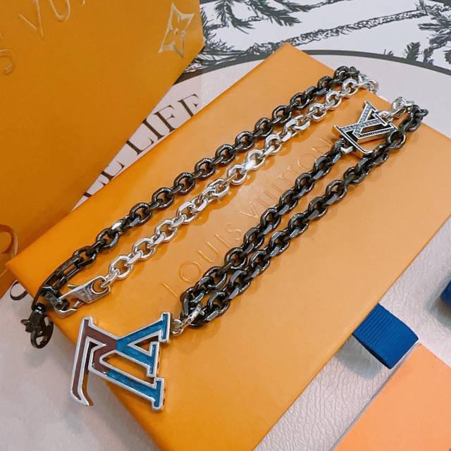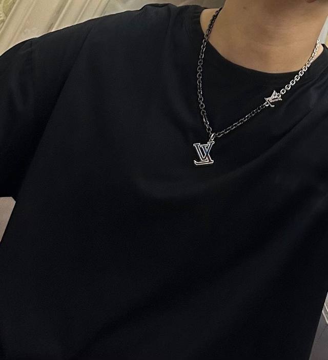 Louis Vuitton (LV) necklace, original single item, new model, retro trendy fashion must-have, unisex, couple style, rock punk Thai silver style, retro elements, trendy and versatile, same style as the official website, latest model, higher grade chain, celebrity classic necklace series, retro silver necklace. Chain length 60cm, length can be adjusted. Details match the original, distressed finish, not the shiny version on the market. This is a consistently best-selling LV style and goes very well with trendy clothes.